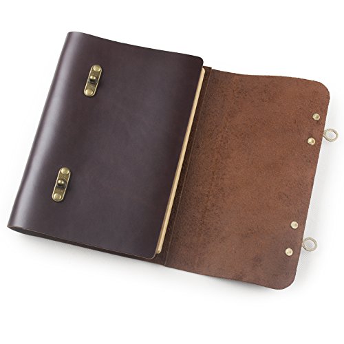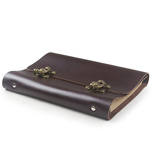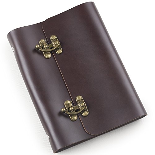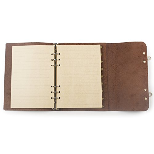 ANCICRAFT Genuine Leather Journal Notebook Diary Refillable with Cool Lock 6-ring Binder Lined Craft Paper (Dark coffee A5)