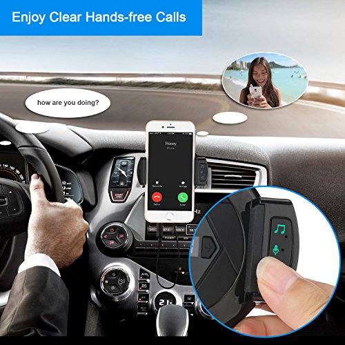 【Hands free Calling】 :Built-in microphone, .Hi-Fi FM Transmitter enables you to answer/ hang up/ reject a call or redial the last number via mufti-function button. A safe way to keep in touch with your families and friends while driving .