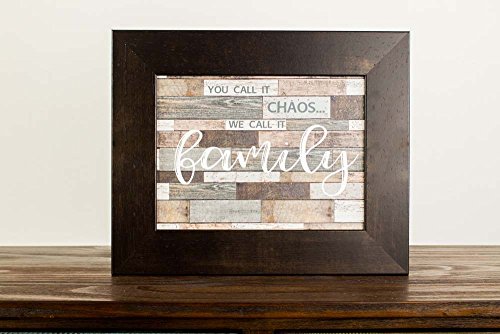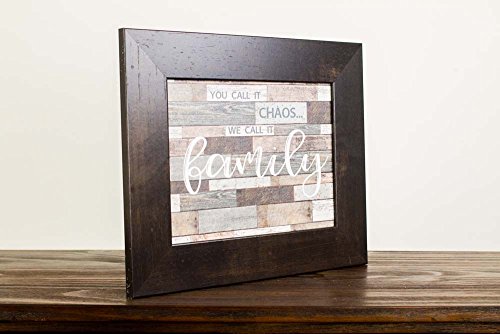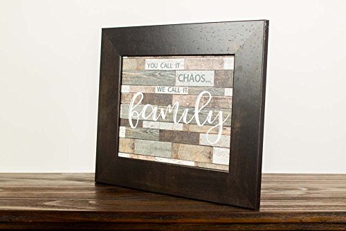 You Call It Chaos, We Call It Family Rustic Distressed Restoration Wood Grey Art Decor 13x16" (Espresso Brown Frame)