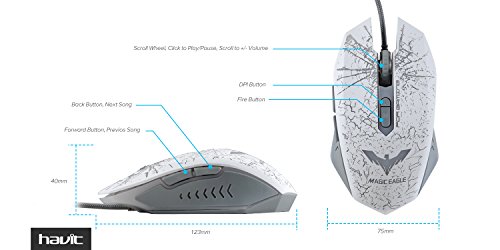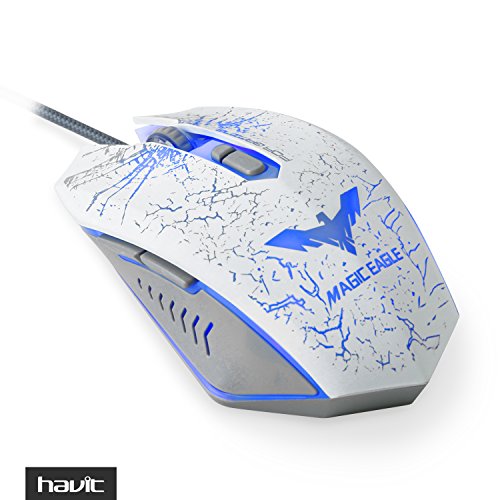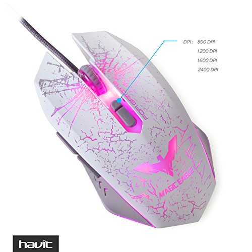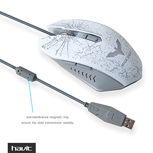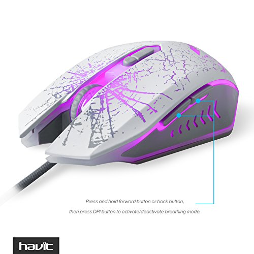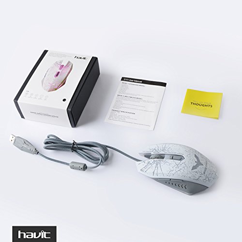 HAVIT S10 Ergonomic LED Stress-ease Wired Mouse with 4 Adjustable LED Colors,7 Buttons (White)