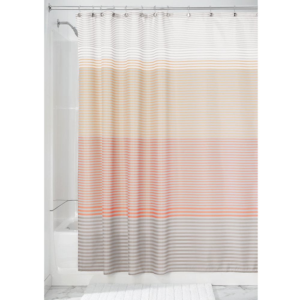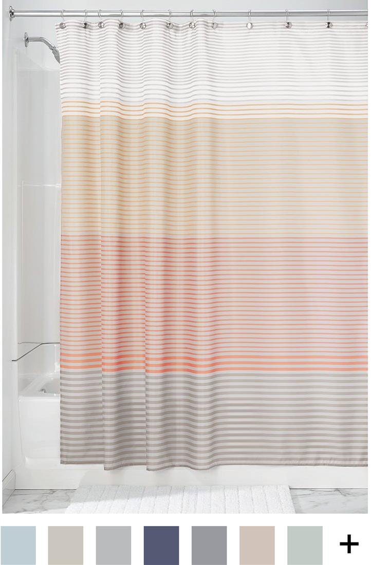 InterDesign's fabric shower curtain is washable with 100% polyester.