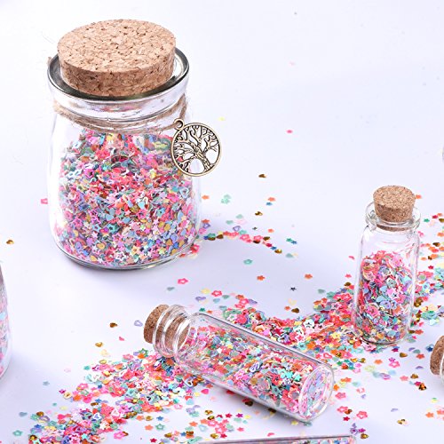 -. Feature : Glitter confetti bulk: each confetti size is approx. 3 mm, tiny size looks lovely and delicate; Mix color confetti, shiny and glossy with metallic lustre, can meet your needs / Multi-shapes: 6 different shapes including stars, hearts, flowers, hollow stars, hollow heart and hollow flowers, meet your decoration needs well / Develop your imagination: you can also develop your ideas to create your own artwork, add these glitter into any nail polish for your unique nail art style / Wide application: these glitter confetti is suitable for art craft project, such as table and party decoration, also use for nail arts, body and facial make-up, etc. / Quantity: 100 g/ 3.5 ounces mix color sequins in different shapes; You can also put these sequins into a clear bottle, to make a exquisite projects