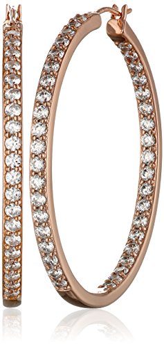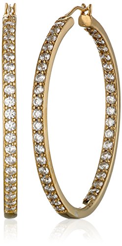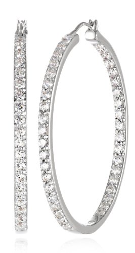 -. Feature : Large hoop earrings featuring shared-prong Swarovski Zirconia stones on front and inner curves / Hinge with notched-post backings / Crafted in plated .925 sterling silver / Imported