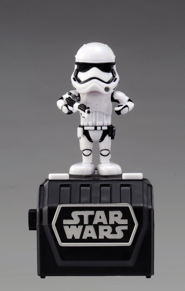 When you press the button, the character braces marching according to the music of STAR WARS bravely.