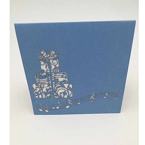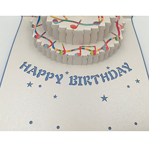 lilliCraftGift 3D Pop Up Cards with Envelope Birthday Thanksgiving Greetings-Happy Birthday Piano Cake-White Blue