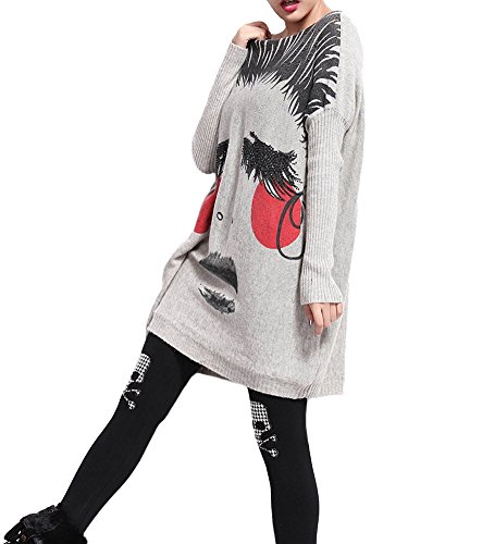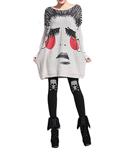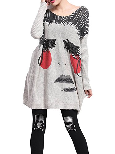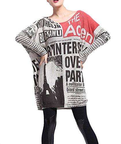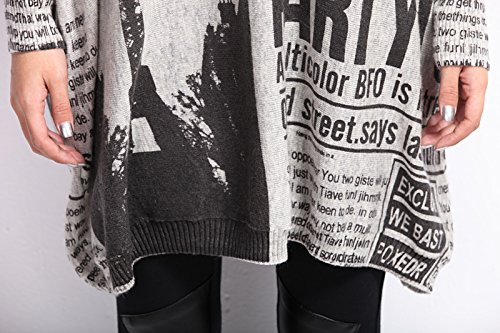 -. Feature : Kuschelig weicher Pulli Oberteil mit ausgefallenem Gesicht oder Zeitung Design. / Einheitsgröße 32 34 36 38 40: Brustumfang 130cm / Länge 72cm / Ärmel 60cm Ärmel eher 3/4 / Ein echter Hingucker für Frühling und Herbst. Man kann sogar den Oberteil an einem kälteren Sommertag gut anziehen.Fällt weit und luftig. / Für legeres Ausgehen, Party oder gemütlich zuhause ideal. / Perfekt mit Lederhose,engen Hosen,Leggings,Jeans,Röhrenjeans kombinieren.