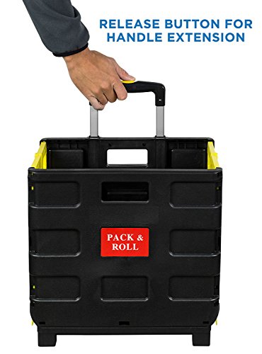 -. Feature : COLLAPSIBLE ROLLING HAND CART - Lightweight utility hand truck perfect for moving books, paper, classroom supplies, personal items, file folders or groceries. Save your back and carry things around with the right tool for the job. Perfect for use at home, office, business, travel or shopping. Let our rugged dolly do the heavy lifting. / PREMIUM MOBILE UTILITY CRATE AND FILE BOX- Constructed from rugged polypropylene case and rust-proof aluminum handle and rated to hold up to 55 lbs. Durable 3" diameter rubber wheels generate no noise and roll smoothly. / TELESCOPING HANDLE - Handle telescopes up to 34 inches for convenient load handling. Hand grip is contoured for comfort and added grip strength. Crate provides 1.2 cubic feet of enclosed cargo space. / EASY TO USE - Rolling collapsible dolly unfolds easily in seconds for use. Step 1: Extract the handle. Step 2: Unclamp and unfold the side walls. Step 3: Pull down the bottom of the crate. Add the load and tilt the dolly back to start moving. Comes in frustration-free packaging. No assembly required. / EASY STORAGE - Folds down flat for easy transport and storage in vehicles, under a bed, in a closet, storage rooms or garages. Folded dimensions of the personal cart is 16.5 in High x 16 in Wide x 3 in Deep.