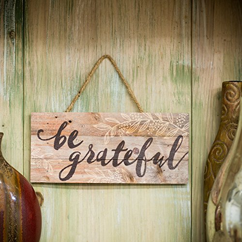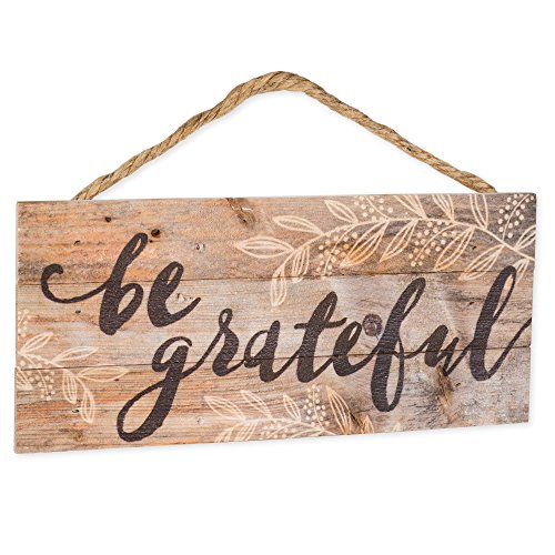 Be Grateful Distressed 5 x 10 Wood Plank Design Hanging Sign
