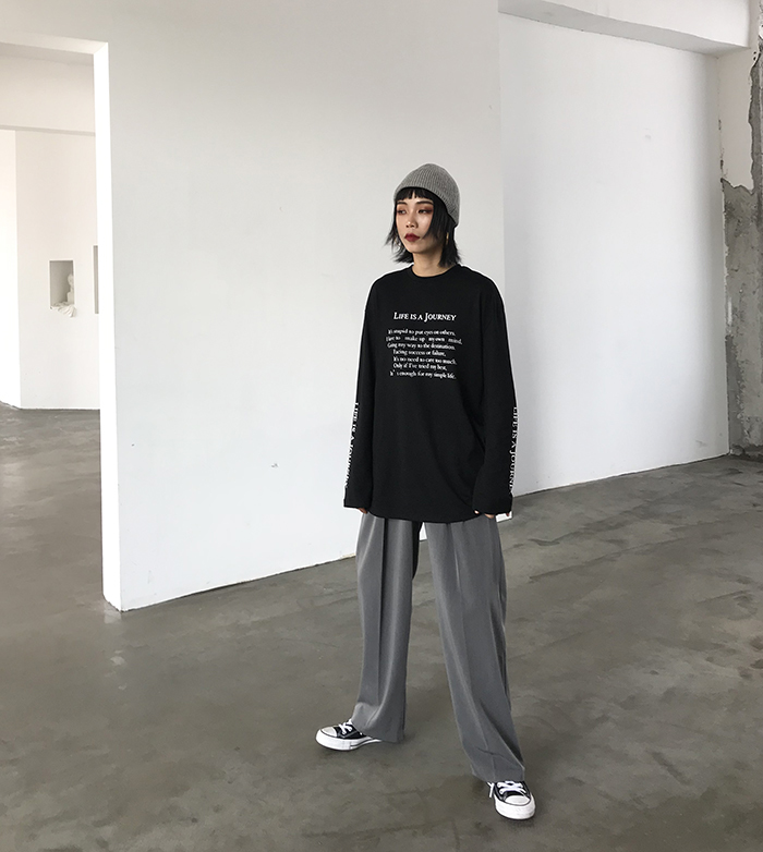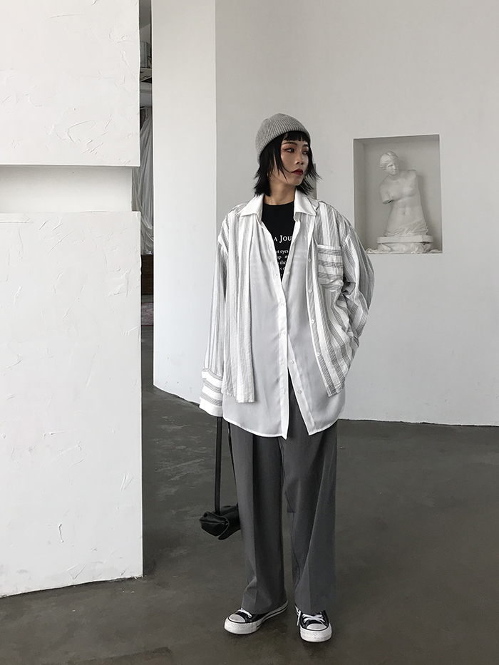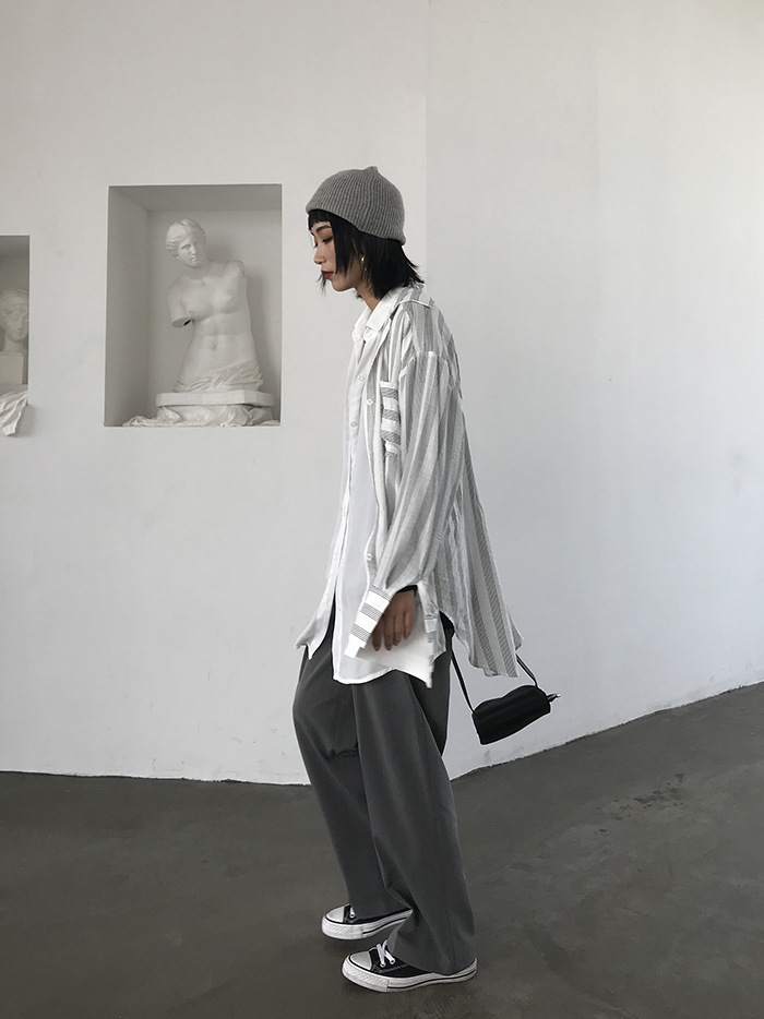全体をルーズなシルエットでまとめるのが今季おすすめのスタイリングです。