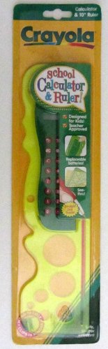 Crayola Calculator & Ruler is the ultimate cool tool for school! It not only accomplishes necessary tasks like calculating, measuring and stenciling, the Calculator & Ruler does it with superior performance and style. This 3-in-1 multi-tasking school supply is smartly-designed to conveniently snap into a 3-ring binder for quick access and convenient storage. Students no longer have to worry about misplacing essential school supplies like calculators and rulers. Its hard-to-loose design features a contrasting color scheme of purple and lime making it easy to spy in a pig-sty. And if this tool wasn't cool enough, it also features a fun and funky flip-out surprise-stencils. Kids simply flip out the ruler to reveal assorted standard and quirky stencils like shapes, cartoon balloons and lighting bolts, allowing kids to add some originality to otherwise humdrum homework assignments. When kids are done measuring with the standard and metric ruler or creating with stencils, they simply push the button in the middle of the ruler and it easily snaps back into place for compact storage. The Crayola Calculator & Ruler features a calculator, a 12" ruler, 17 stencils and a battery cell.Feature