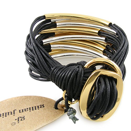-. Binding : Jewelry -. Brand : Gillian Julius -. Department : womens -. EAN : 0641020979428 -. Feature : Made up of 20 cords that each have a gold or silver feature. Simple push through clasp makes for an easy, secure closure. / Silver and 14KT gold plating and waxed cotton cord. / Anti-tarnish finish / One size fits most / Presented in designer pouch -. Label : Gillian Julius -. Manufacturer : Gillian Julius -. Model : rb2m-blk -. MPN : rb2m-blk -. PartNumber : rb2m-blk -. ProductGroup : Jewelry -. ProductTypeName : FASHIONNECKLACEBRACELETANKLET -. Publisher : Gillian Julius -. Studio : Gillian Julius -. Title : Gillian Julius Multi Tube Bracelet in Silver & Gold and Black -. UPC : 641020979428