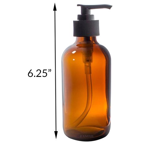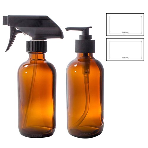 8 oz Amber Boston Round Thick Glass Spray and Pump Bottle Set + Labels