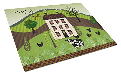 Caroline's Treasures Folk Art Country House Glass Cutting Board Large, Multicolor