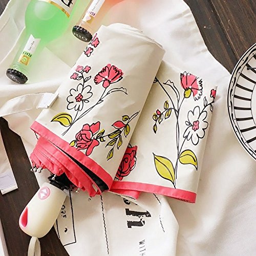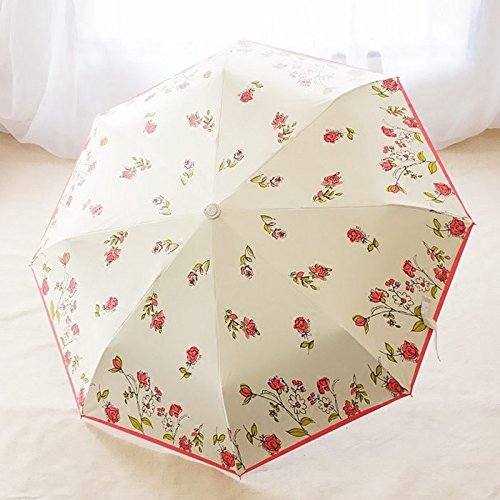-. Title : Generic Romantic Cherry Rose automatic triple folding umbrella shade umbrella rain or shine UV sunscreen women girl