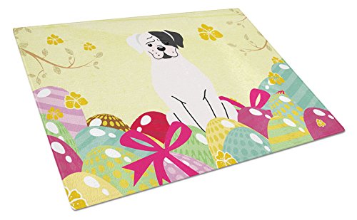 Caroline's Treasures Easter Eggs White Boxer Cooper Glass Cutting Board Large, Multicolor