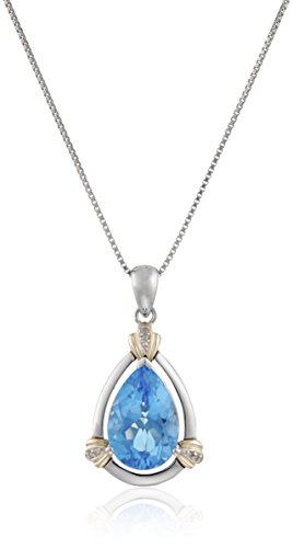 -. Binding : Jewelry -. Brand : Amazon Collection -. Department : womens -. EAN : 0696737237347 -. Feature : Sterling silver pendant necklace featuring diamond accents surrounde in yellow gold and a pear-shape blue topaz centerpiece / The natural properties and composition of mined gemstones define the unique beauty of each piece. The image may show slight differences to the actual stone in color and texture / Gemstones may have been treated to improve their appearance or durability and may require special care / All our diamond suppliers confirm that they comply with the Kimberley Process to ensure that their diamonds are conflict free. / Imported -. Label : Amazon Curated Collection -. Manufacturer : Amazon Curated Collection -. Model : ESJ56632BSCA -. MPN : ESJ56632BSCA -. PartNumber : ESJ56632BSCA -. ProductGroup : Jewelry -. ProductTypeName : FINENECKLACEBRACELETANKLET -. Publisher : Amazon Curated Collection -. Studio : Amazon Curated Collection -. Title : Sterling Silver and 14k Yellow Gold Swiss Blue Topaz and Diamond Accent Pendant Necklace -. UPC : 696737237347