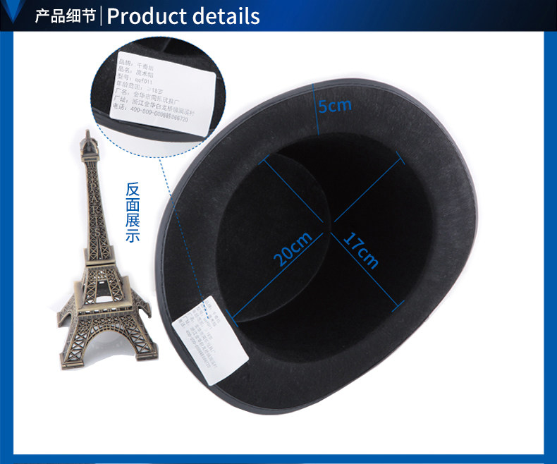 Size: height of about 16cm, brim width of 5cm,