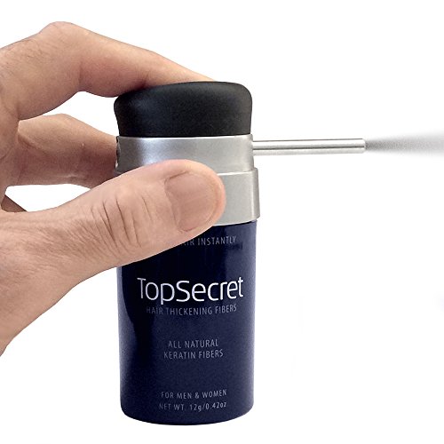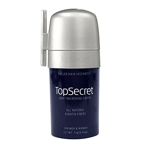 -. Binding : Misc. -. Brand : Top Secret -. Feature : Men and women look instantly younger with wind, rain and sweat resistant natural keratin fibers - that don't come off until you wash them out. New and Improved applicator. More precise, more compact. Now in 3 sizes and 9 Colors. 30 day money back guarantee. / Blends seemlessly with own hair at the scalp. Totally undetectable. Takes seconds to apply. Hair looks instantly thicker. Thinning parts and visible scalp disappear. Covers grey roots to extend time between colorings. / Includes our U.S. patented Air-Burst Applicator that allows for easy, natural looking application. New patent pending compact design takes up less space and protective cap keeps bulb clean at all times. Comes in travel size that fits in your pocket for night out or weekend trips. / Best results and most natural "look" due to ease of use from refined precision applicator and top-of-the-line colors (designed by world renowned Hair Expert ). No more clumping. Perfect for filling in edges and covering grey hair. Can be used on eyebrows, moustaches and beards. / Used by professional hair and make-up artist on Hollywood movie sets and Fashion Week runway models around the world. Voted Best Beauty Product at New York Fashion Week. -. IsAdultProduct : 0 -. Label : Top Secret -. Manufacturer : Top Secret -. ProductGroup : Beauty -. ProductTypeName : BEAUTY -. Publisher : Top Secret -. Studio : Top Secret -. Title : Top Secret Hair Thickening Fibers - New Compact Design!