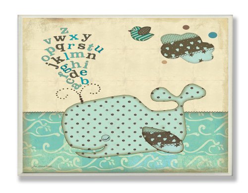 The Kids Room by Stupell Polka Dot Blue Whale with Alphabet Rectangle Wall Plaque