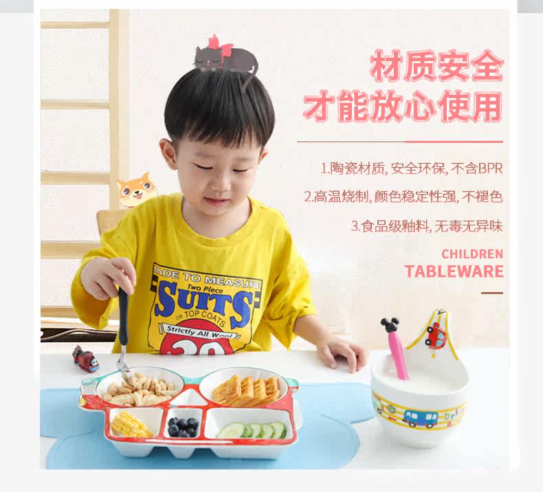 儿童餐具餐盘分格创意卡通陶瓷宝宝吃饭碗家用个性菜盘子