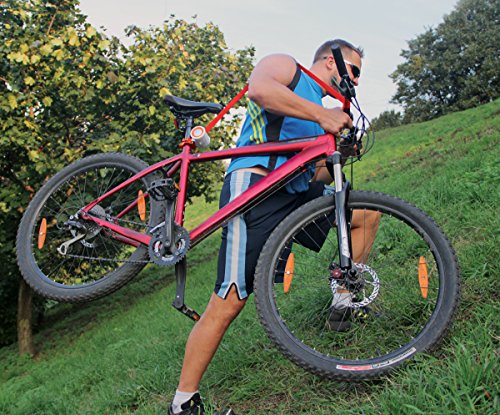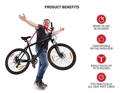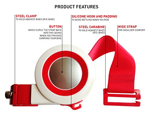 • EASY TO USE: Use or put away in a second. Special button retracts the strap back into the casing once you've finished carrying your bike.