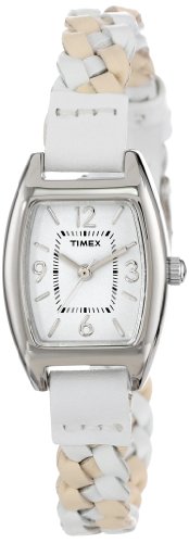 Timex Women's T2N7649J Weekender Shaped Case White & Tan Woven Leather Strap Watch