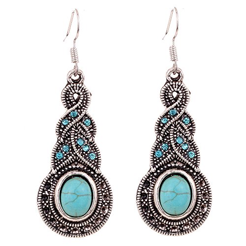 CrazyPiercing Tibetan Silver Oval Rimous Turquoise Crystal Drop Dangle Earrings