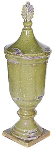 - Antiqued ceramic decorative lidded jar has classic elegance with a beautiful aged finish