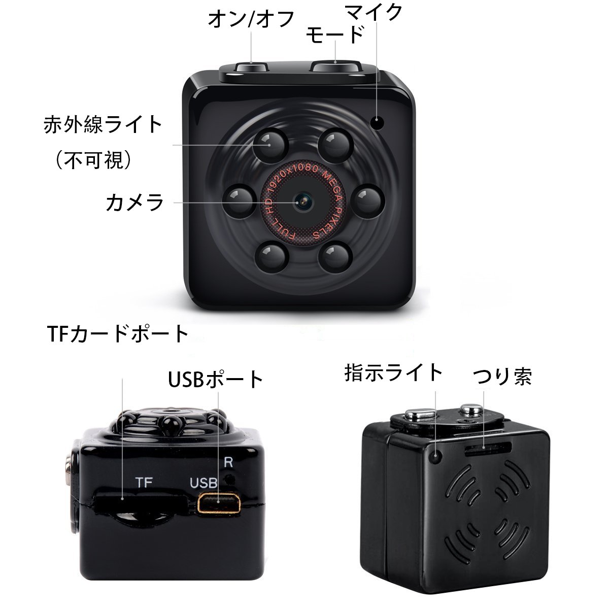 Set Contents (1st photo) ☆ Cube Camera body, MiniUSB 8 pin USB / video output terminal cable, clip type attachment, attachment to change the clip type attachment to the stationary type, strap, instruction manual (English / Chinese), and detailed instructions on how to operate Japanese are attached. Appearance ☆ It is a cube type camera of 2.5 cm in depth and 2 cm in depth. (Photo 2nd sheet) ☆ 6 infrared rays are attached around the camera lens. (Photo 3rd) ☆ There is a power button and mode button at the top, and it operates with the combination of these two buttons. (Photo 4th sheet) ☆ There are MicroSD card slot, MiniUSB 8 pin port on the side. (Photo 5th sheet) ☆ There is no display, you can check the operation status with the LED light on the back. (6th photo) How to use ☆ Because I have detailed instructions on how to operate Japanese, I think that it can be used without problems. ※ Conversely, it is difficult to operate without this manual, so let's not lose it. ☆ Power on / off, press and hold the power button for 6 seconds. ☆ Still image shooting, 720p movie, 1080p movie each has standby mode. ☆ After starting each standby mode, start shooting and stop. ☆ Infrared mode is a separate operation. ☆ All operation confirmation is done by the state of the LED light on the back left shoulder. Actually use (Photo 7, 8 th piece) (Movie) ☆ You can shoot movies of 1980 x 1080 p and 1280 x 720 p. Both are 30 fps. ☆ The video codec adopts M - Jpeg and the old conversion method, and the container file is "avi".