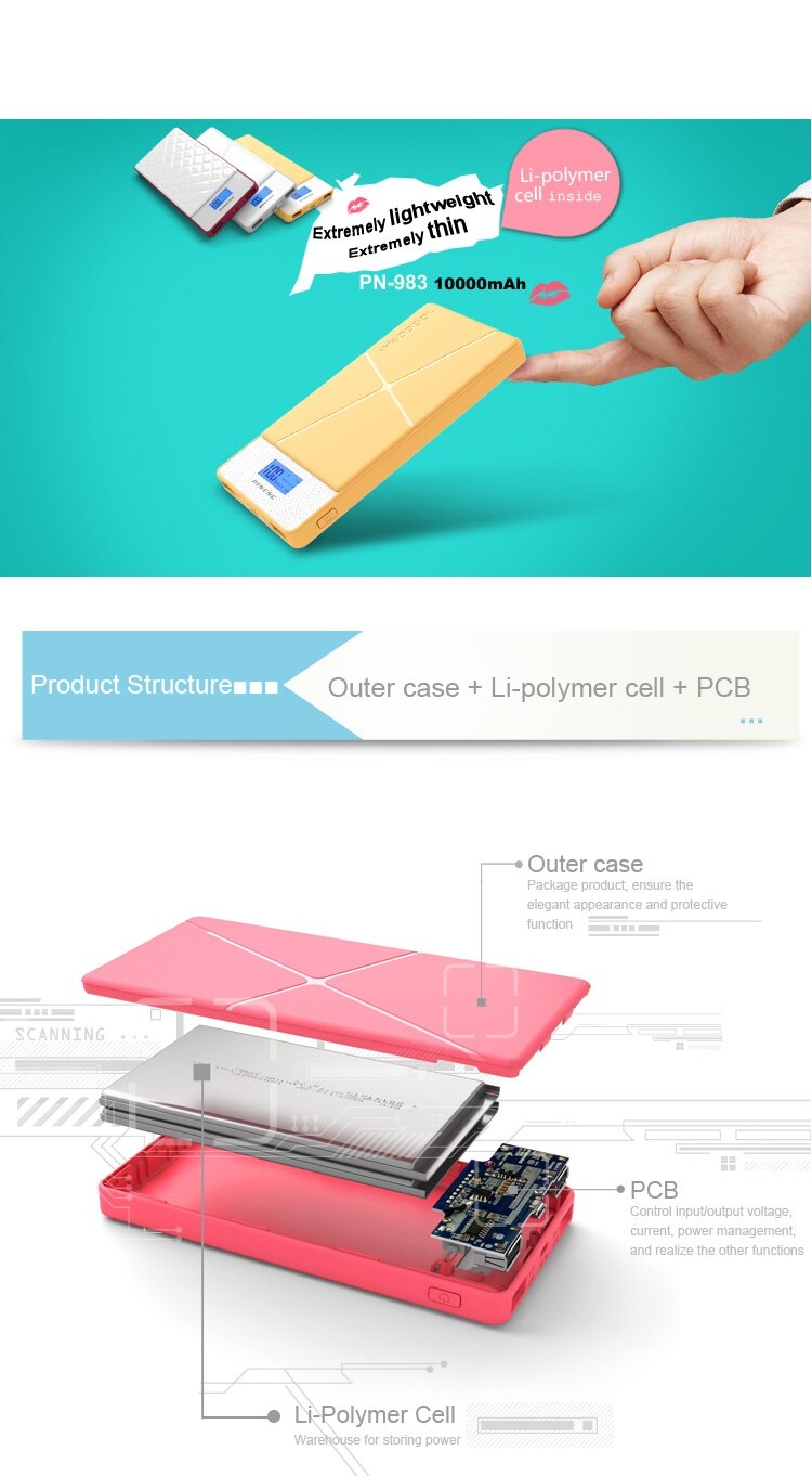 Product details of Pineng PN983s 10000mAH Lithium Polymer Slim PowerBank Pink/Blue/White