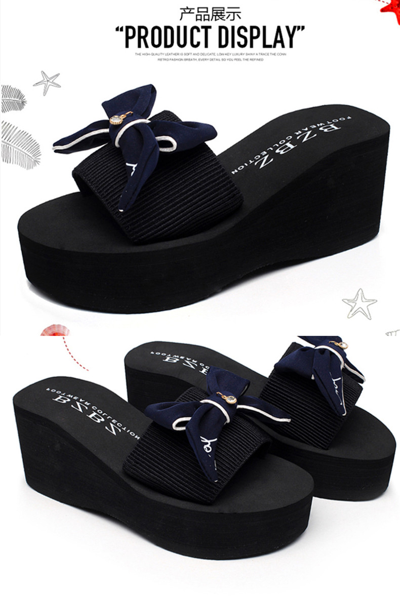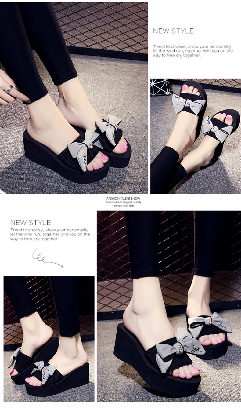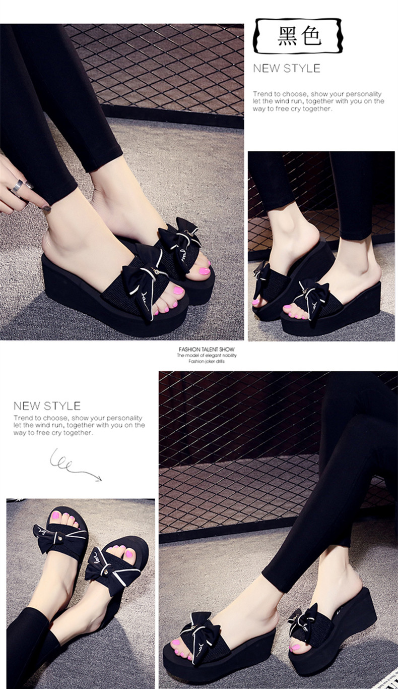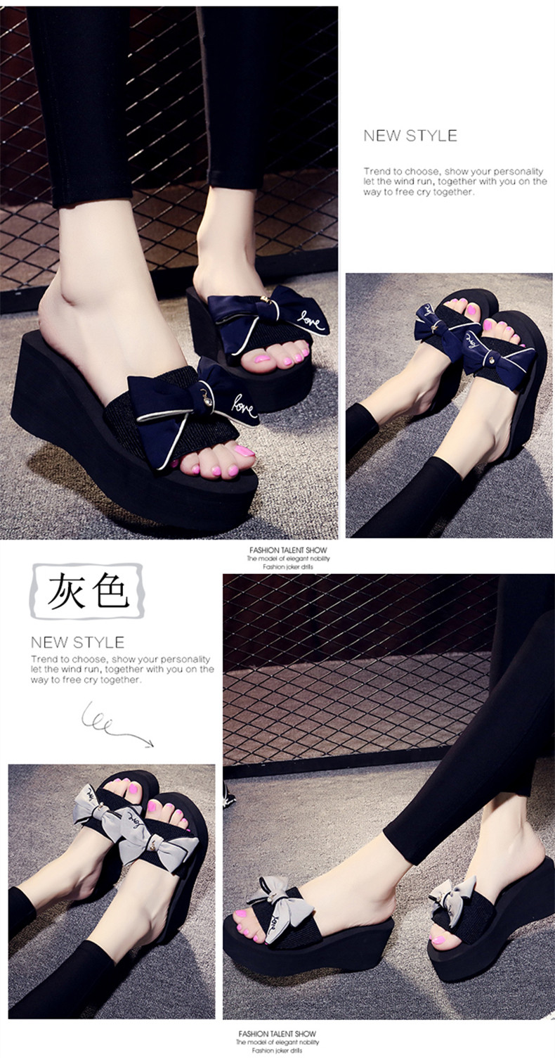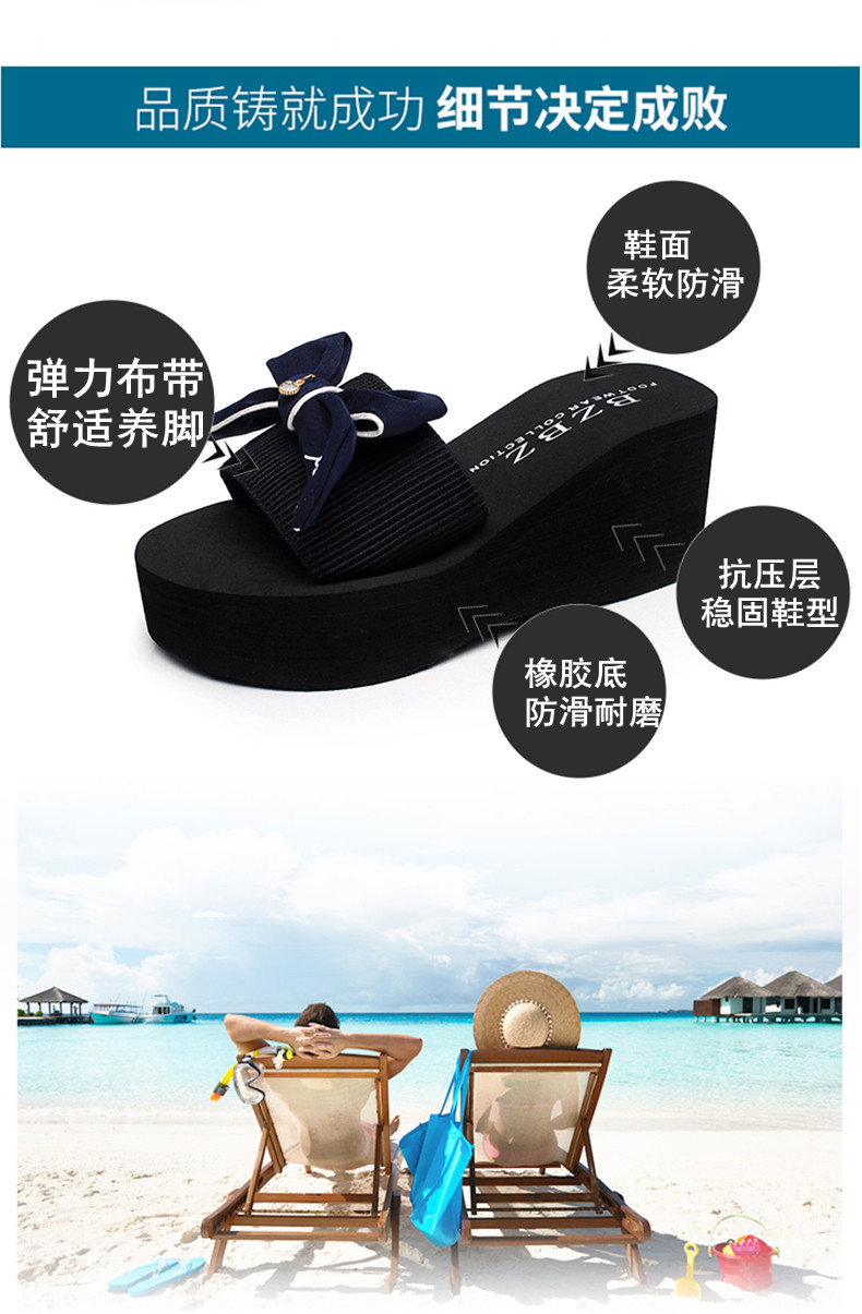 拖鞋女夏厚底蝴蝶结一字拖鞋韩版高跟时尚休闲沙滩鞋外穿坡跟凉拖