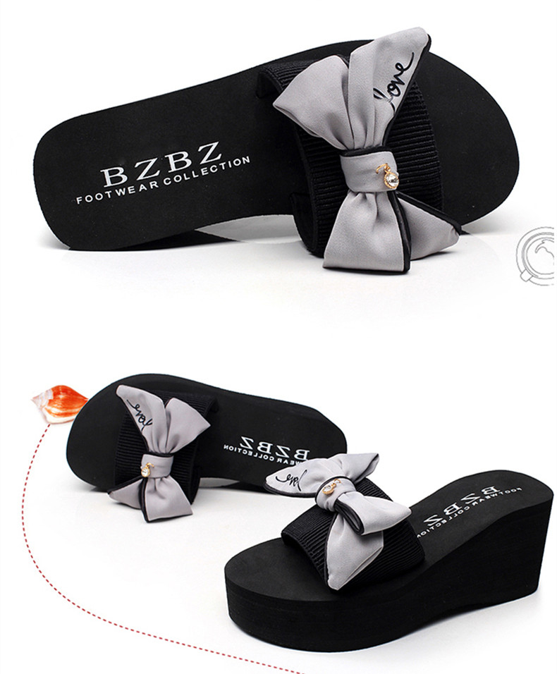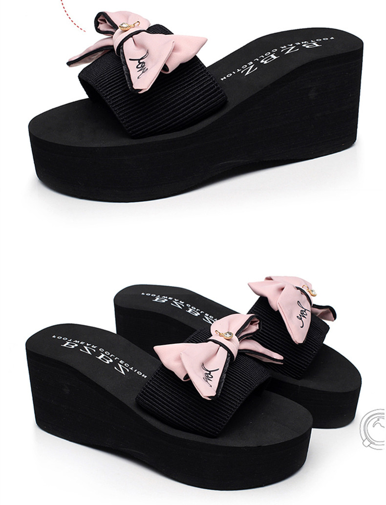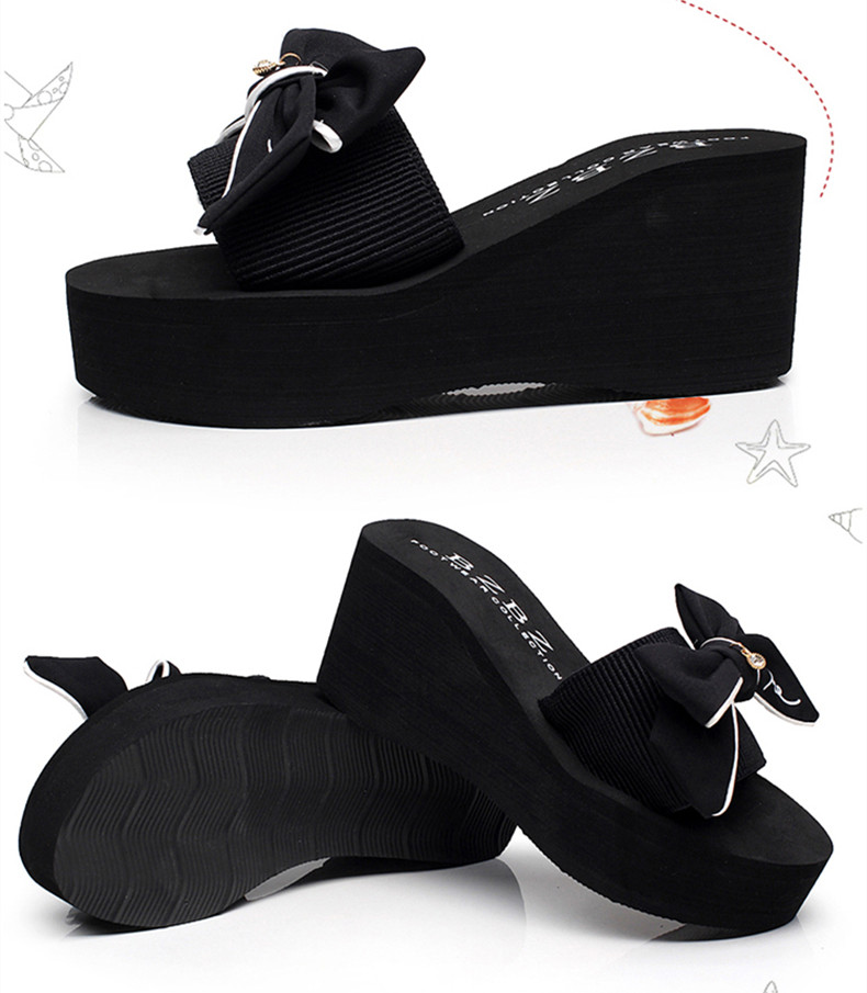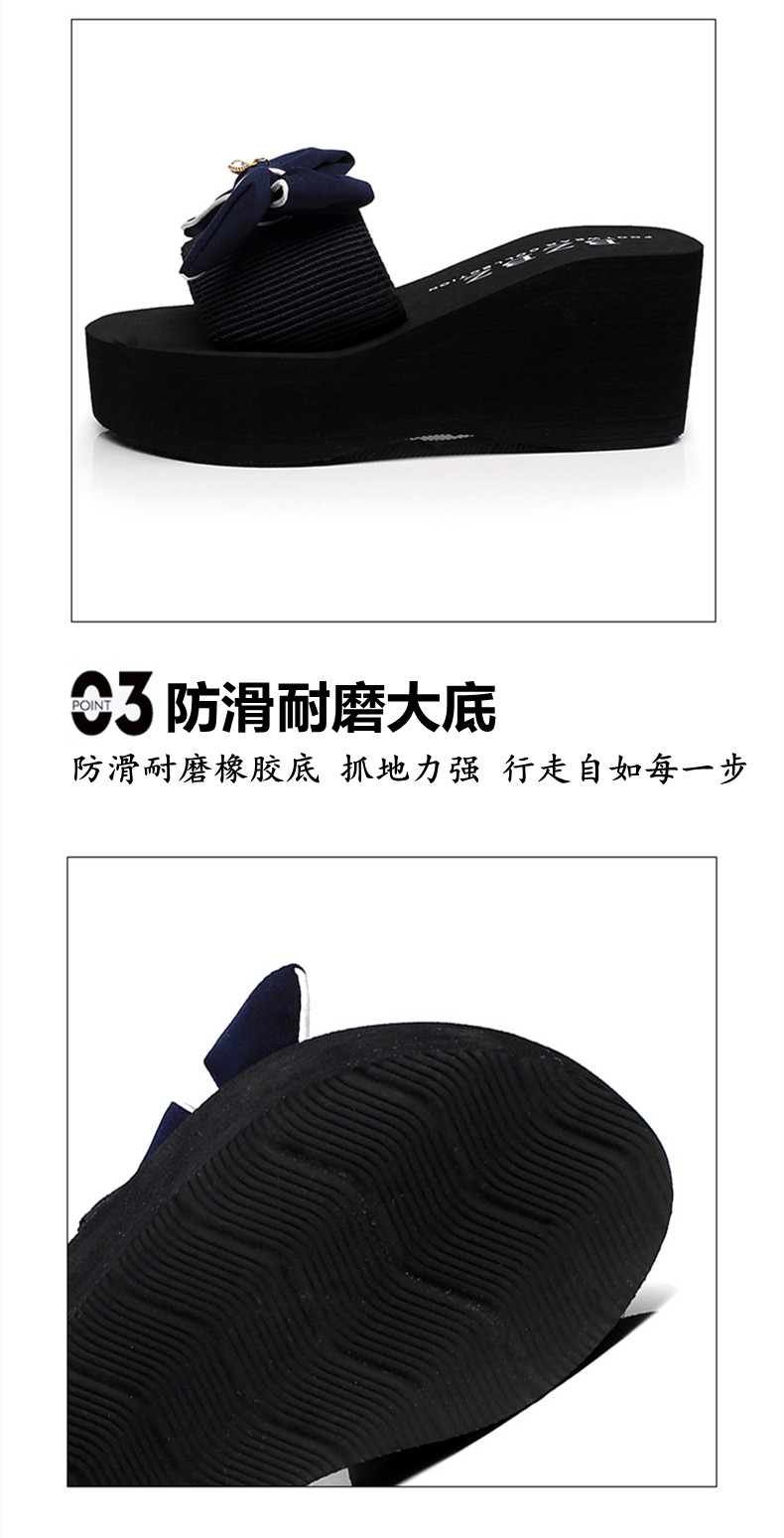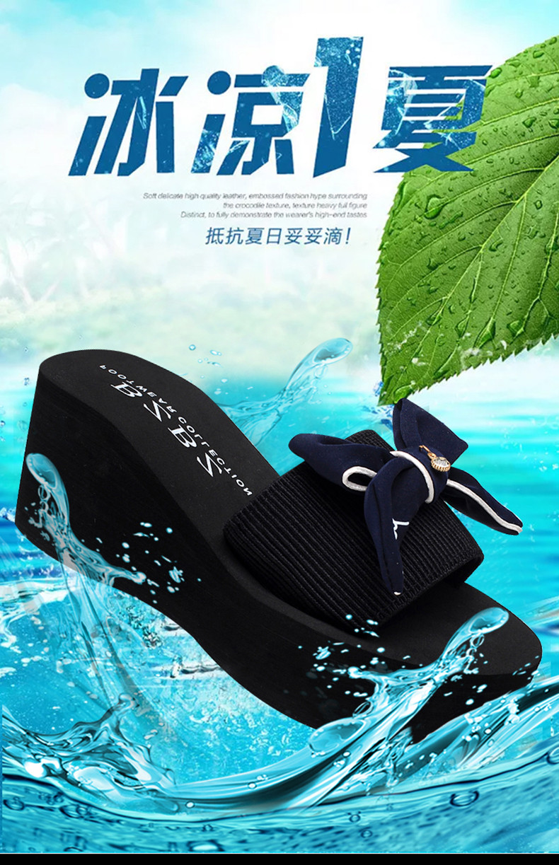 拖鞋女夏厚底蝴蝶结一字拖鞋韩版高跟时尚休闲沙滩鞋外穿坡跟凉拖