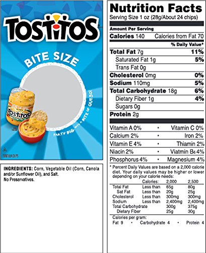 -. Feature : 13.0 oz. bag of TOSTITOS Bite Size Tortilla Chips / Crunchy chips for a great snack / Spice up your snack time with some TOSTITOS Medium Salsa / Gluten free product / Great tortilla chips for a party or get-together
