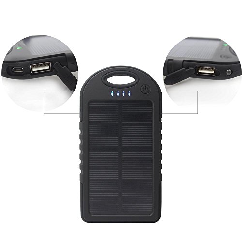 -. Feature : Waterproof,Dust-proof and Shock-Resistant: Environmentally friendly ABS+PC materials, and rubber paint surface process,Super waterproof and dustproof solar charger,strong shockproof and drop resistance. / High Capacity: 5000mAh Capacity Power Bank with solar energy technology,the Solar Charger Panel could charge itself under sun for emergency / Double USB Output: 2x 5V 1A (max), charging two devices at the same time; LED indicates the battery status; Solar energy technology, could charge itself under sun for emergency / Portable: Easy to hold in hand and hang on backpack with carabiner / Mutil function:The solar power bank is suitable for charging iPhones, iPads, Android phones,GPS devices,cameras,etc