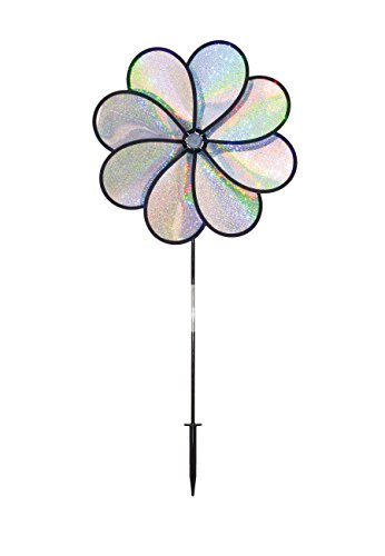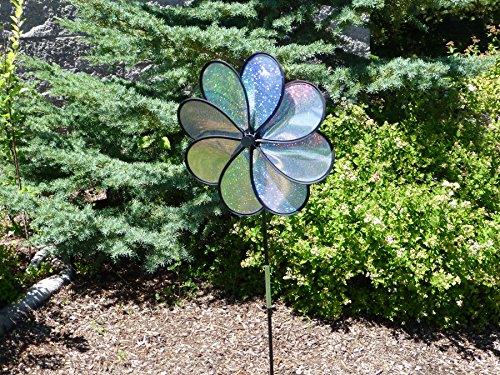 Product Description The 14" Silver Sparkle Flower Spinner features 8 petals made from quality Mylar material cased in black. This spinner is designed to spin effortlessly in the breeze to add a splash of sparkle and motion to your garden!. 0