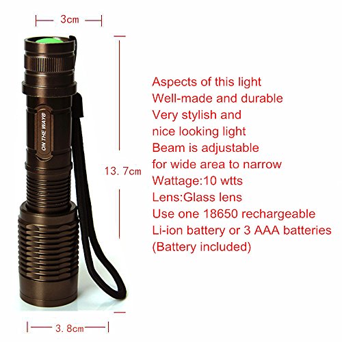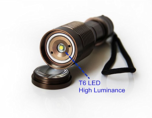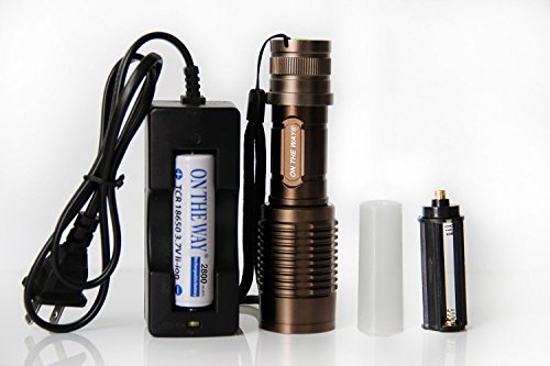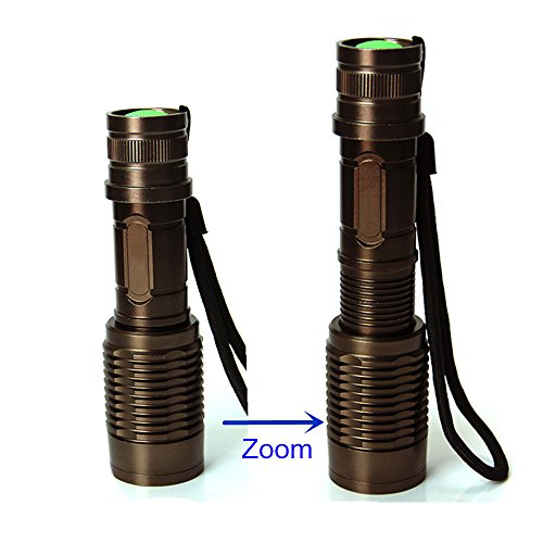 ON THE WAY?1600 Lumens Tactical Adjustable Handheld LED XML T6 5 Mode Adjustable Focus Zoom Tactical Torch AAA/18650 Zoomable Zoom Flashlight Torch Powered By 1Pcs 18650 battery and Charger (Brown)