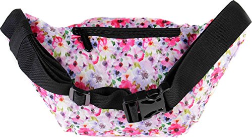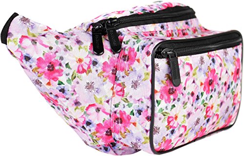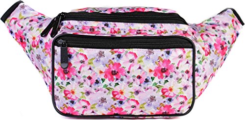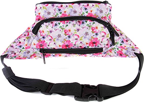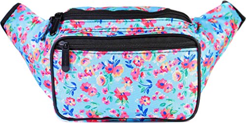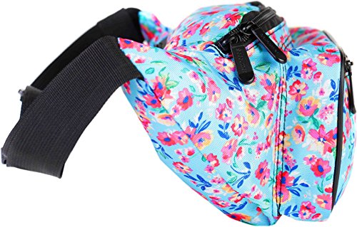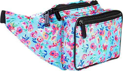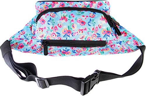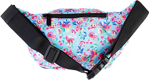 SoJourner Bags Fanny Pack - Animal, Fruit and Floral Prints (multiple styles - flamingos, watermelons, pineapples, flowers) (Floral Blue)