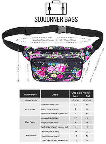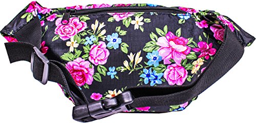 SoJourner Bags Fanny Pack - Flower, Floral, Rose (Pink / Yellow / Black)