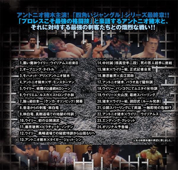 アントニオ猪木主演、「四角いジャングル」シリーズ最終章!!「プロレスこそ最強の格闘技」と豪語するアントニオ猪木と、それに対峙する最強の刺客たちとの熾烈な戦いを収録したDVD!