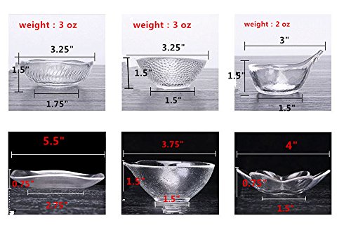 - The 3 ounce Heat-resistant glass bowl ,3.25 inches diameter,1.5 inches in height, making them also great for sauces, salsa and guacamole.