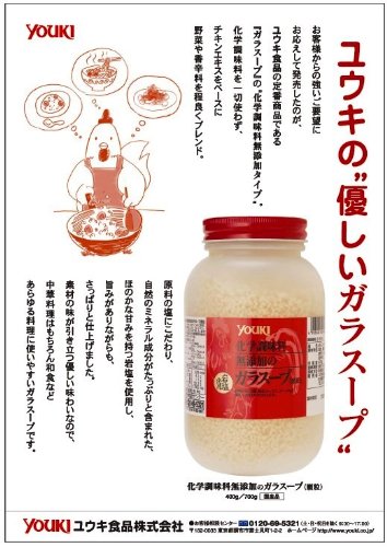 化学調味料無添加のガラスープです。通常のガラスープと同様に炒め物、スープなどにお使いいただけます。素材の味を邪魔せずに旨みとコクをプラスします。