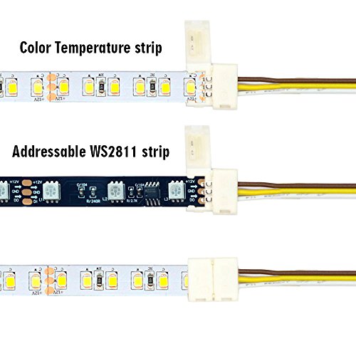 SuperlightingLED 5pcs Pack Strip Wire Solderless Snap Down 3Pin Conductor LED Strip Light Connector for 8/10/14mm Wide Color Temperature and Dream Color Light Strip (10mm)