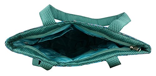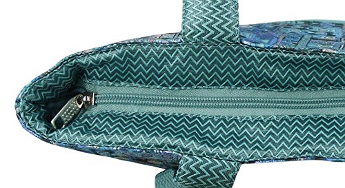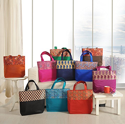 Digitally printed Brocade fashion bag 15 x 16 inch Faux Silk Dupion,TURQUOISE,Totes