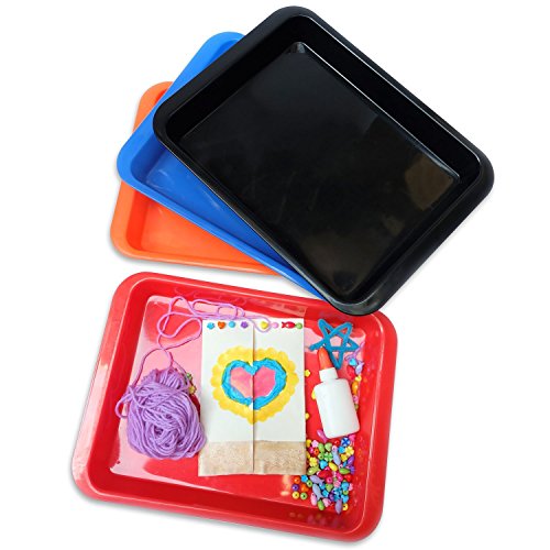 Studio : Doodle Hog Publisher : Doodle Hog Binding : Office Product Product Description Multi purpose medium organizer trays are another win for my family. The 8-pack saves you money and comes in four colors. Art and Craft trays come in pack of 8, and will help keep your crafting spaces neat and tidy. The material of the tray is made of polypropylene (PP) plastic number 5. It is PVC and BPA-free. INSIDE TRAY: 11 in x 8.5 x 1.5 inches OVERALL TRAY : 13.5 x 10 x 1.5 inches.They are perfect for the classroom, daycare, homeschool and playroom, and can store all of your crafting supplies. Our customers say: "My favorite feature is the depth of the trays. Each tray is pretty deep to hold all of the crafts, but shallow enough that the kids can reach in and have fun playing.As a side note, this would make a great personal sensory bin. Just fill up with a sensory toy, and let your kids have fun." My girls love to paint, dot art, color, and do crafts, so these trays are perfect for keeping everything in order and not on my floor.The side lips are tall enough that small cups and bottles of glue fit without falling over. These trays are at a fraction of the useful montessori trays. Perfect for setting up a learning environment. 0 |