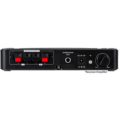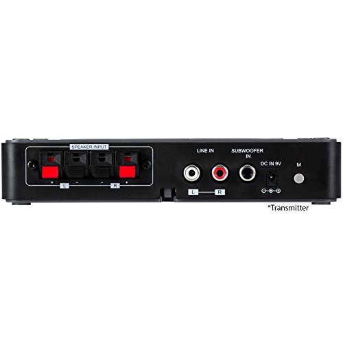 Avoid the hassle of running wires under carpet or along your baseboards, just use the Dayton Audio XRA25. Connect line-level right and left channel inputs or high-level (speaker) inputs from your A/V receiver to the XRA25 transmitter. Your audio signal is then sent wirelessly to the XRA25's receiver in the rear of your home theater. The built-in 25 watt per channel amplifier provides a generous amount of power to drive rear channel speakers. Control the volume of your rear channels speakers with the volume knob on the receiver/amplifier. 34-transmitting channels provide options for interference-free operation. Expand your subwoofer placement options with the XRA25. The subwoofer channel provides a wireless path for a LFE signal from the A/V receiver to feed a powered subwoofer at the rear of the room. The XRA25 includes a transmitter unit, receiver/amplifier unit, two power supplies, two sets of 6 ft. speaker wire, and two vertical stands. If any interference is experienced with the system, press and hold the "M" button on the transmitter and receiver simultaneously; the units will pair automatically. Specifications: Power output: 25 watts at 4 ohms, 12 watts at 8 ohms Frequency response: 20-20,000 Hz Subwoofer output: 2V Input sensitivity: 1V (line in), 2V (subwoofer in), 10V (speaker in) Total harmonic distortion: <10% at 4 ohms Signal to noise ratio: >80 dB Range: 100 ft. Dimensions: 1.6" H x 6.9" W x 3.9" D.Feature