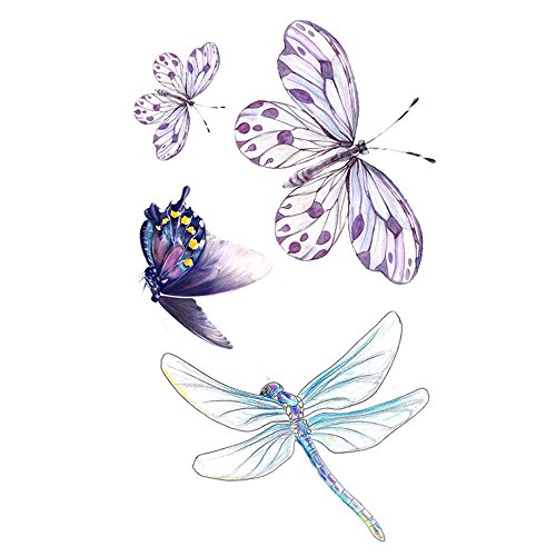 WYUEN 5 Sheets Waterproof Butterfly Temporary Tattoo Dragonfly Fake Tattoo Sticker For Women Men Hand Body Art 9.8X6cm