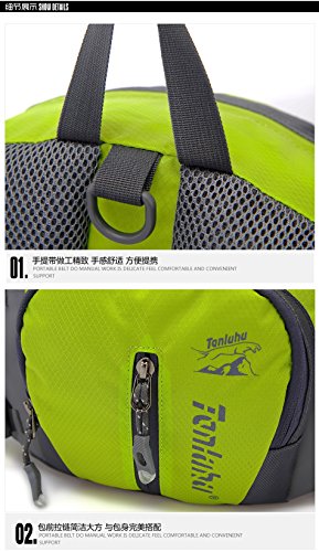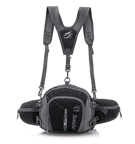 -. Feature : 4L Capacity multipurpose fanny pack with front bag / Material: waterproof nylon fabric / Suitable for hiking travelling running cycling climbing / Joined the soft sponge in the behind, can reduce stress and fatigue / Can be compressed and folded, convenient to carry