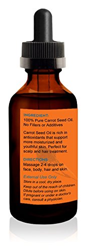 PLEASING NATURAL ALTERNATIVE beauty and health treatment that really works. You no longer have to use chemical filled moisturizers, harsh drugs, or resort to painful, expensive surgery. Our premium quality all natural 100% pure Carrot Seed Oil is filled with the specific nutrients your body craves. Helps repair, rejuvenate, and give you beautiful hair, skin, and nails. 100% MONEY BACK GUARANTEE ensures this will be your best bet for a pleasing no-risk purchase. Many customers love this oil so much they return to buy another bottle to share with a friend. HURRY AND BUY NOW while we have a fresh supply in stock. This makes a much appreciated gift for friends, family, and co-workers.Feature