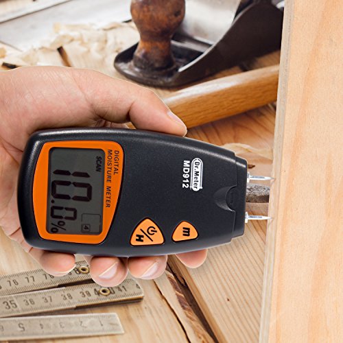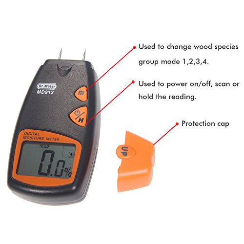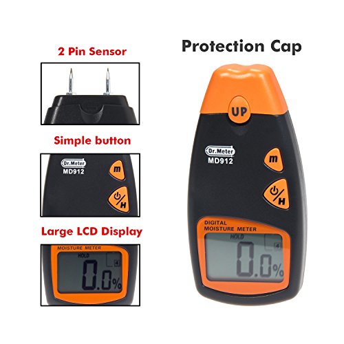 Dr.meter Digital Wood Moisture Meter,Wood Water Moisture Tester with HD Digital LCD Display ,2 Spare Sensor Pins and 4 modes for different materials, Range 2% - 70%,Accuracy: +/-0.5%, MD912
