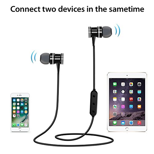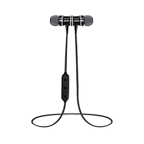 Kimitech S1 Bluetooth 4.1 Stereo In-Ear Earbuds, Wireless Headset Alloy Housing with Magnet Attraction Design and Secure Ear Hooks,Sweatproof Noise Isolating with Enhanced Bass (Black)